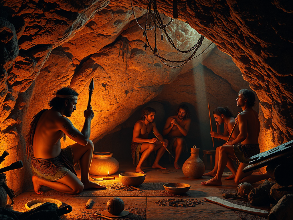 - Arte rupestre levantino, predominante, y cuyo protagonista fundamental son las pinturas antropomórficas, muy estilizadas y con un acusado grado de naturalismo, que son representadas en diferentes actitudes o ejecutando diversas acciones: recolectando, cazando, danzando o luchando. Con frecuencia se acompañan de representaciones de animales.