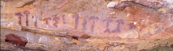 El panel que nos interesa consta de 13 figuritas de color ocre con aspecto de setas y pintadas cerca de un uro. Las dos últimas figuras son de morfología cambiante y podían representar tantos hongos como seres humanos, ya que tienen una base dividida o bifurcada que podrían ser piernas.
