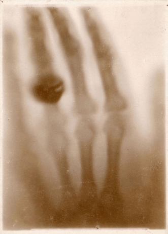 En los días siguientes, Wilhelm comenzó a interponer diversos objetos entre el tubo y la placa, corroborando que la fluorescencia seguía produciéndose, aunque su intensidad variaba: cuanto mayor era la densidad del material interpuesto, menor era la fluorescencia. Además, observó que solo el plomo y el platino eran susceptibles de impedir el paso “de lo que fuera que fuese esa emanación”, en sus propias palabras. En algún momento, llegó a comprobar que, al interponer la mano frente al destello, se podía obtener una imagen de los huesos. Fue ahí que realizó la famosa fotografía de la mano de su esposa, la primera radiografía de la historia y una de las imágenes científicas más icónicas de la humanidad.