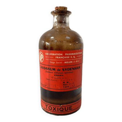 - El opio para el dolor, en forma del conocido Laudano de Sydenham (una preparación de opio en tintura alcohólica, especias y vino de Málaga).