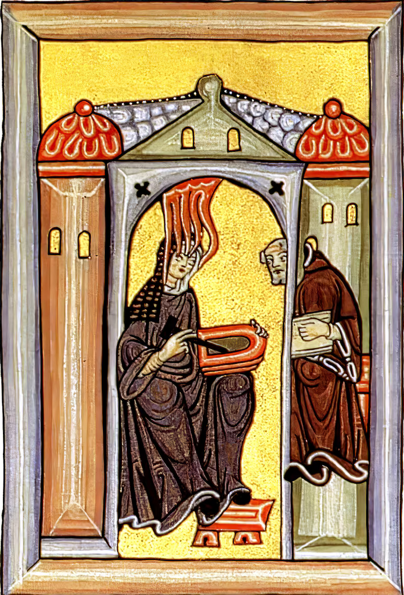Ingresó a los ocho años en el convento de Disibodenberg, como parte del diezmo que su acomodada familia debía a la Iglesia, al ser su décima hija. Allí tuvo la inmensa fortuna de formarse con la monja Jutta de Sponheim, quien, al pertenecer a la nobleza, había recibido una excelente educación. Hildegarda se convirtió en su alumna predilecta y la sucedería como abadesa tras su muerte en 1136.