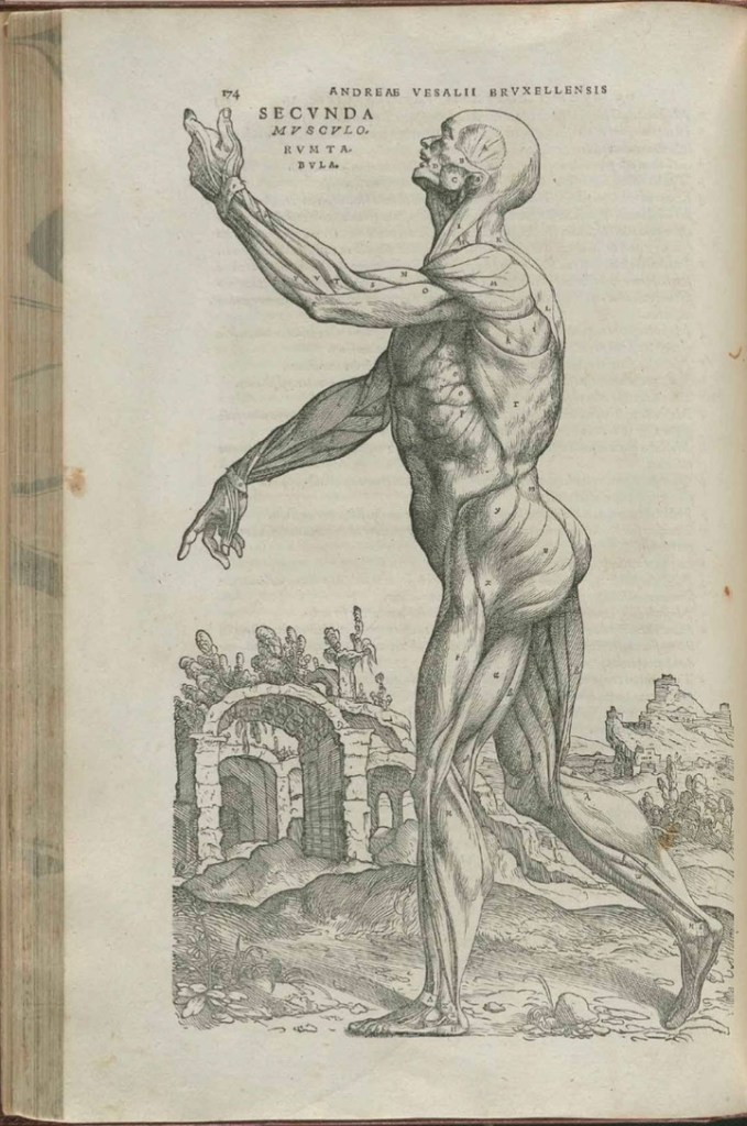 - Libro II (Músculos): Destacan los «hombres musculares» en posturas dinámicas, describiendo cada músculo junto con su función.