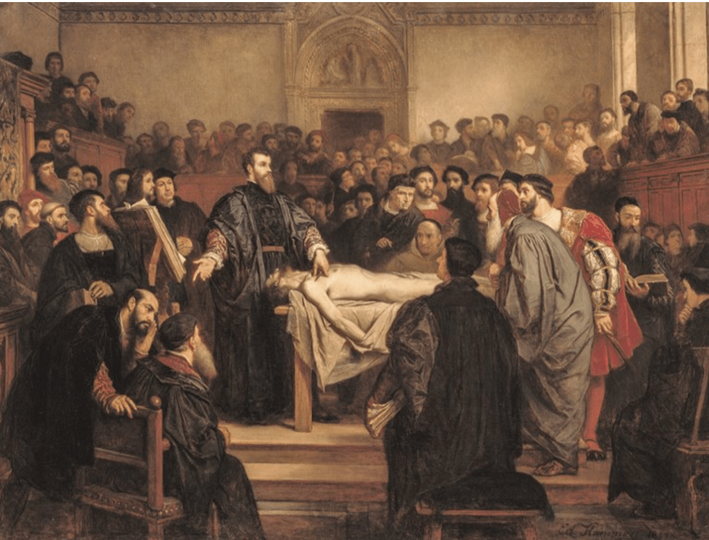 Vesalio pronto destacó por su destreza técnica. Anhelando un conocimiento más profundo, realizaba incursiones nocturnas al Cementerio de los Inocentes para obtener restos óseos o estudiaba los cadáveres de los ajusticiados en las horcas de Montfaucon. Tras regresar a Lovaina y obtener el título de bachiller en 1537, marchó a Padua, donde se doctoró y fue nombrado explicator chirurgiae. A los 23 años, quedaba a cargo de la enseñanza de anatomía y cirugía en una de las universidades más prestigiosas del mundo.