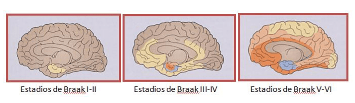 - Fases III a VI: La sinucleína se extiende a la sustancia negra y finalmente a la corteza cerebral, momento en el que aparecen los síntomas motores típicos.