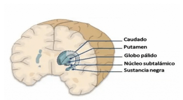 - El núcleo caudado y el putamen (que conforman el estriado).