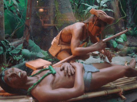 Diorama que representa un ritual de sanación por parte de un chamán en Mesoamérica.