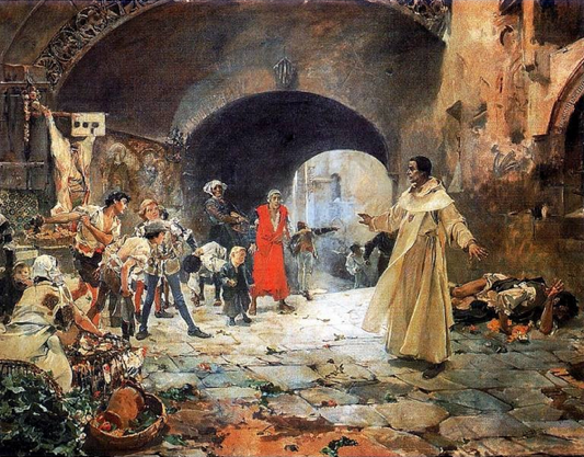 Cuadro de Sorolla que recrea al Padre Jofré defendiendo a un loco de las burlas y agresiones por parte de un grupo de jóvenes en las calles de Valencia.
