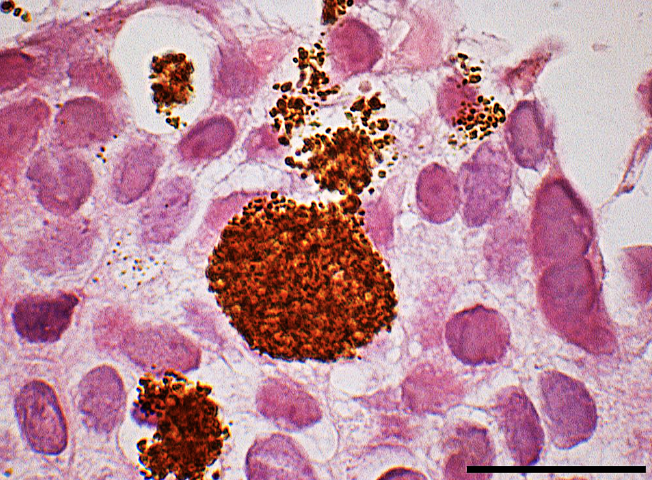 Nanopartículas rodeadas de células de cáncer.