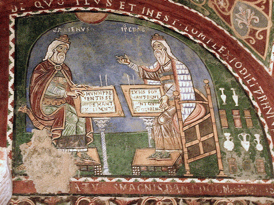 Hipócrates y Galeno en un mosaico bizantino.